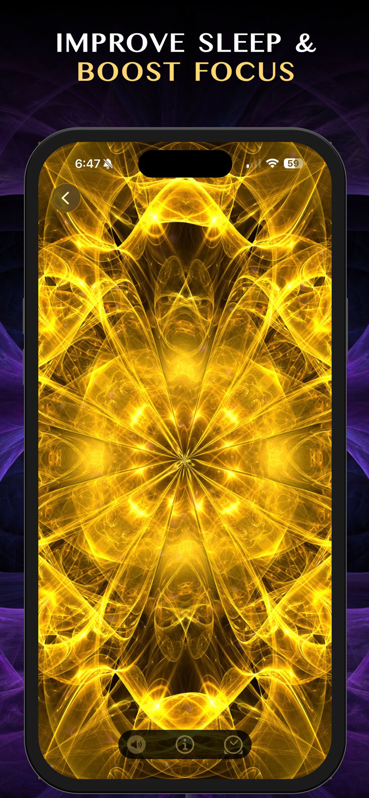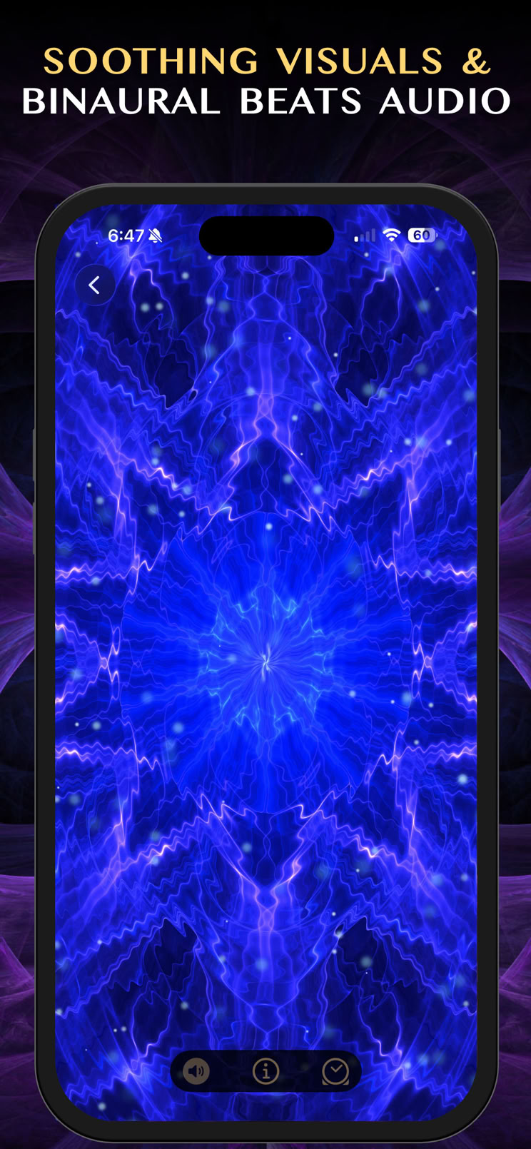 Every session utilizes advanced neuroscience principles through precisely calibrated binaural beats and carefully designed visual patterns that help quiet the mind and lead you to deeper states of mindfulness.