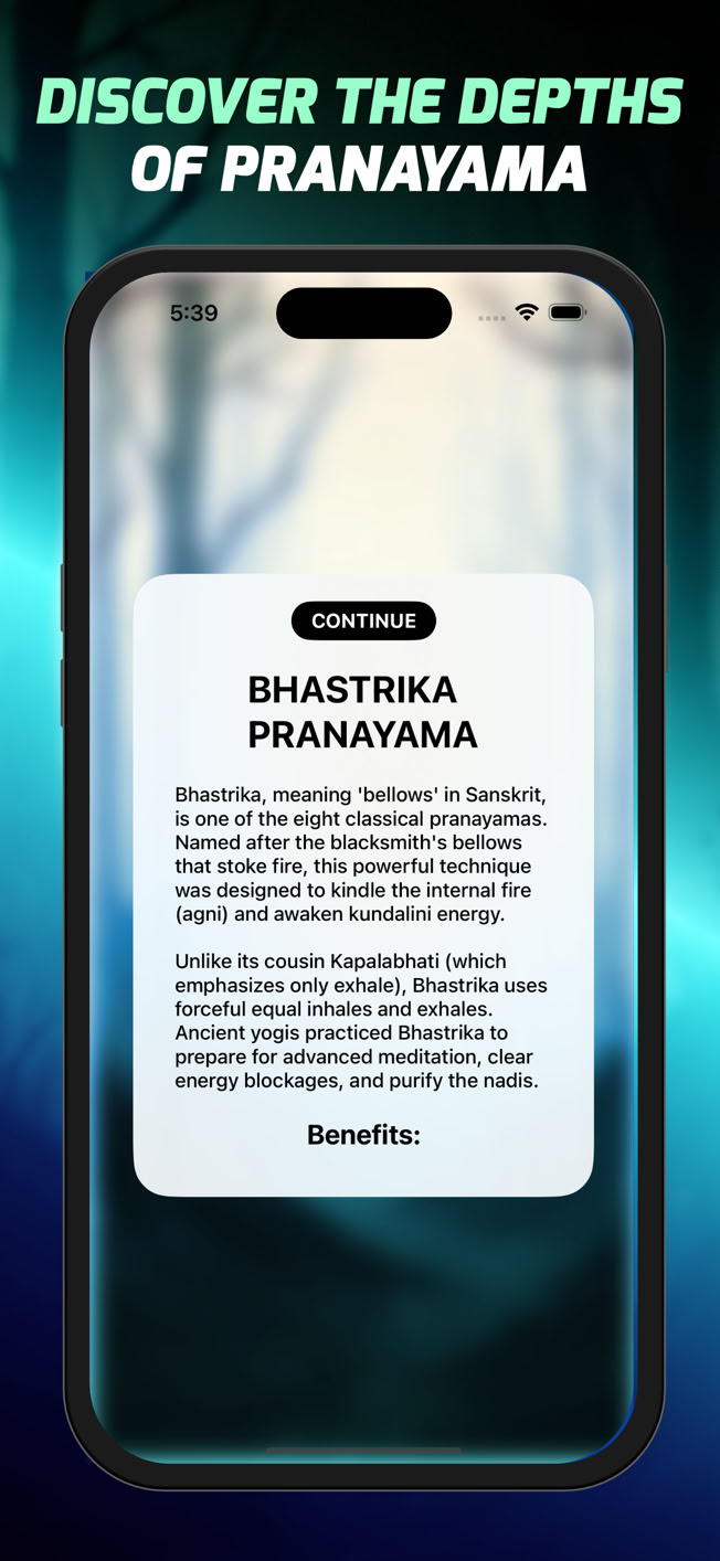 This premium app brings together 4,000 years of yogic wisdom along with new modern techniques to help you reduce stress, enhance focus, and find deep inner calm. Whether you're seeking relief from anxiety, better sleep, or enhanced athletic performance, our expertly crafted routines guide you to profound states of wellbeing. Each session features easy visual guides that sync perfectly with your breath, making even advanced techniques accessible to beginners. No subscriptions, no ads, no distractions - just pure, transformative breathwork.