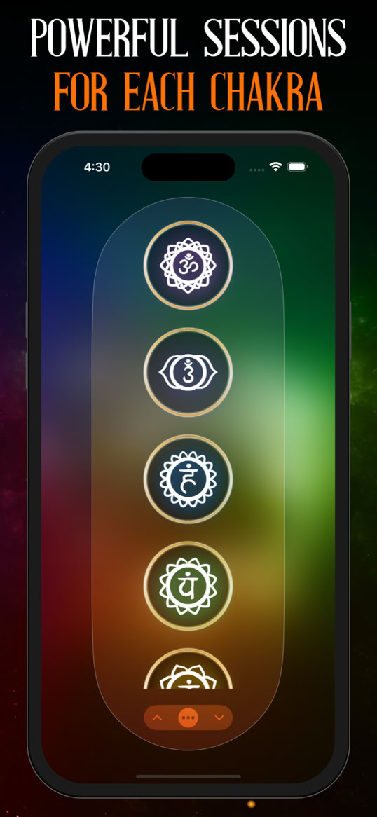 Effortlessly surrender thanks to the distraction-free interface. Simply focus your gaze on the screen's center, and allow the mesmerizing visuals to envelop you in a cocoon of tranquility. Unveil the secrets of each Chakra with informative descriptions and discover potent affirmations to empower your meditation sessions.