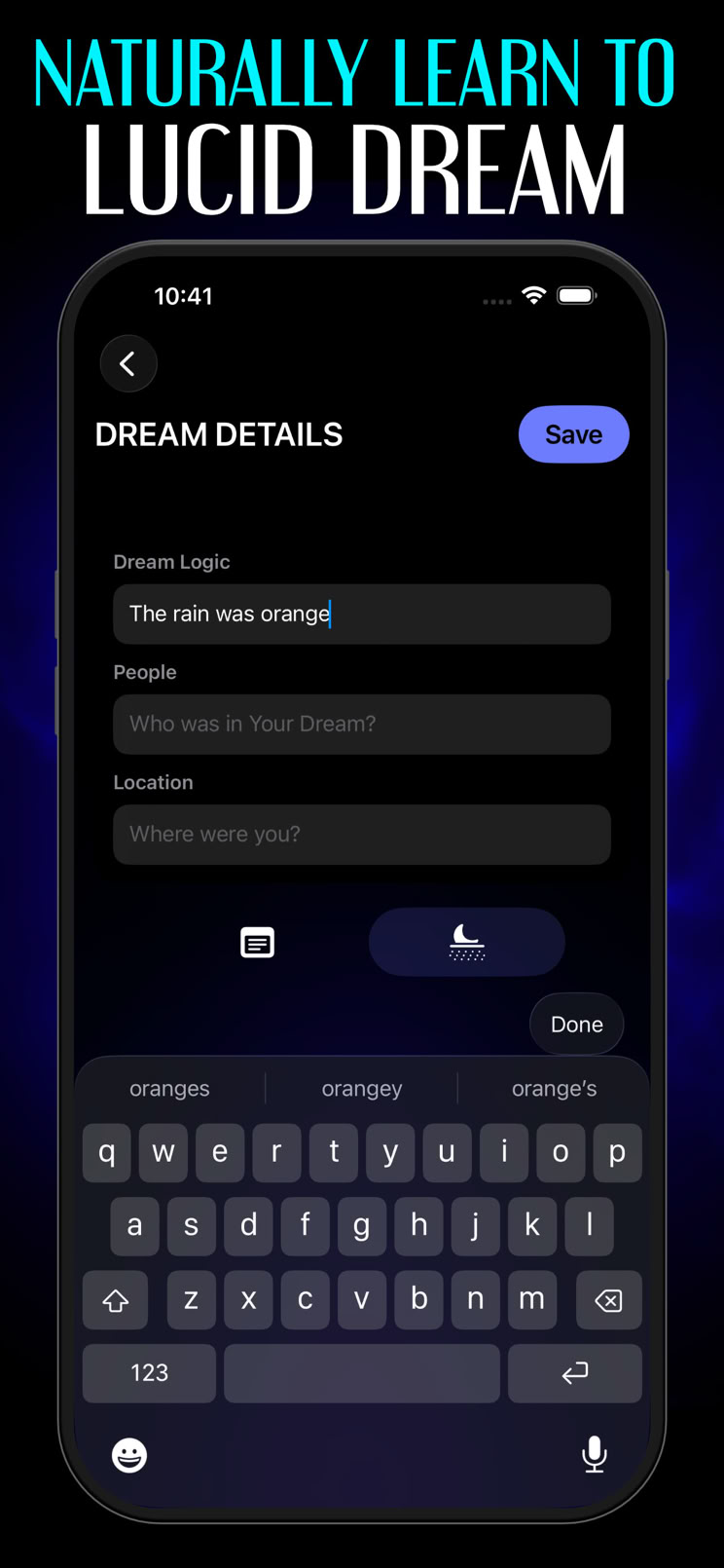Your dreams disappear fast. Lucid Dream Journal is designed to help you capture them just as quickly:
